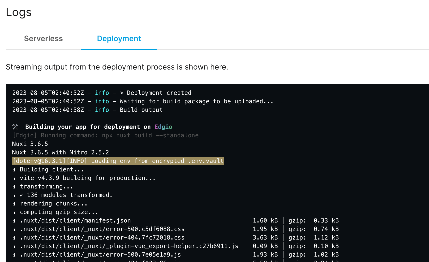 Deploy a Nuxt.js app with an encrypted .env.vault file to Edgio.